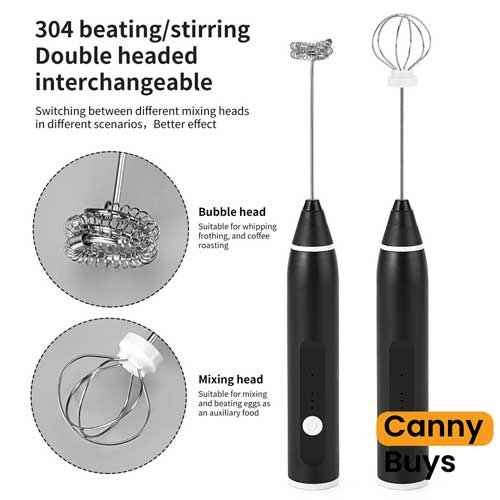 ✅ Interchangeable Double Heads – Comes with a bubble frothing head for creamy coffee foam and a whisk mixing head for baking and cooking needs.