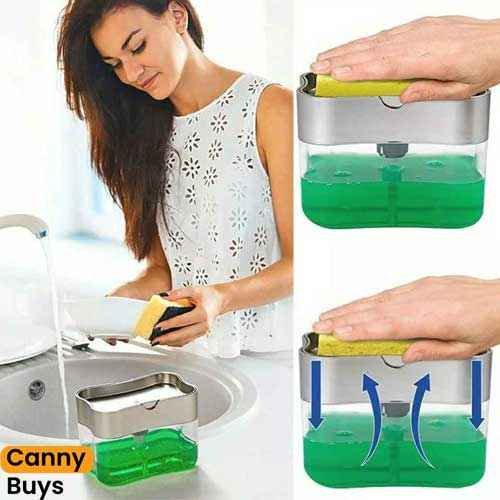 The 2-in-1 Sponge Brush Holder with Soap Dispenser by Canny Buys is the perfect solution for a clean and organized kitchen. Enjoy effortless dishwashing while saving space and money. Upgrade your kitchen today with Canny Buys
