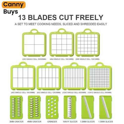 ✅ 22-in-1 Versatile Cutter – Features 13 interchangeable blades for chopping, slicing, dicing, shredding, and even separating egg whites.