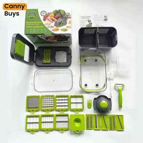 Make your kitchen tasks easier with this 22-in-1 Multifunctional Vegetable Chopper, designed to save time and effort while preparing meals. This is the ultimate vegetable slicer, chopper and dicer in Pakistan. Whether you need to chop, slice, dice, shred, or separate egg whites, this all-in-one cutter is the perfect tool for any kitchen.