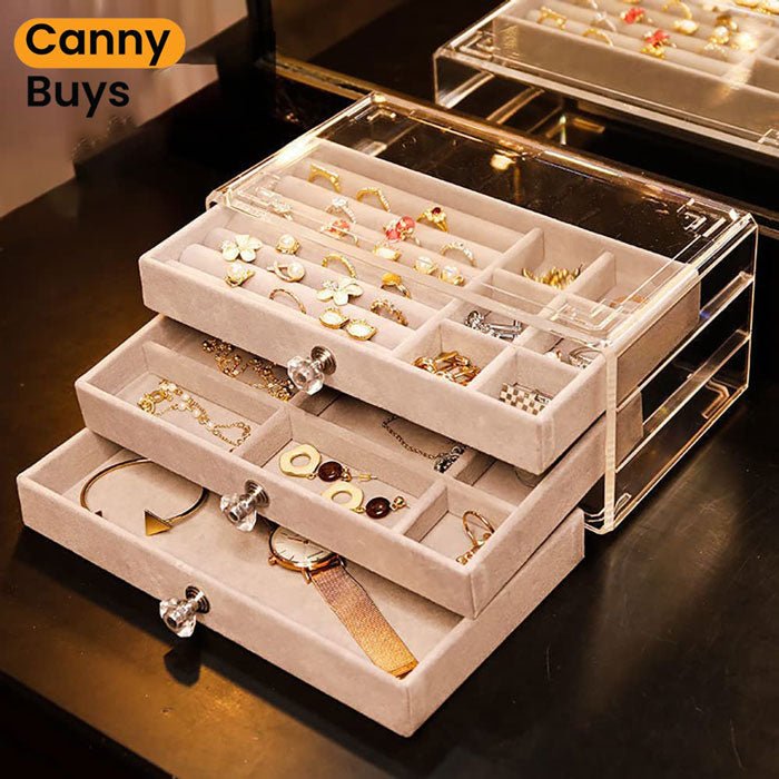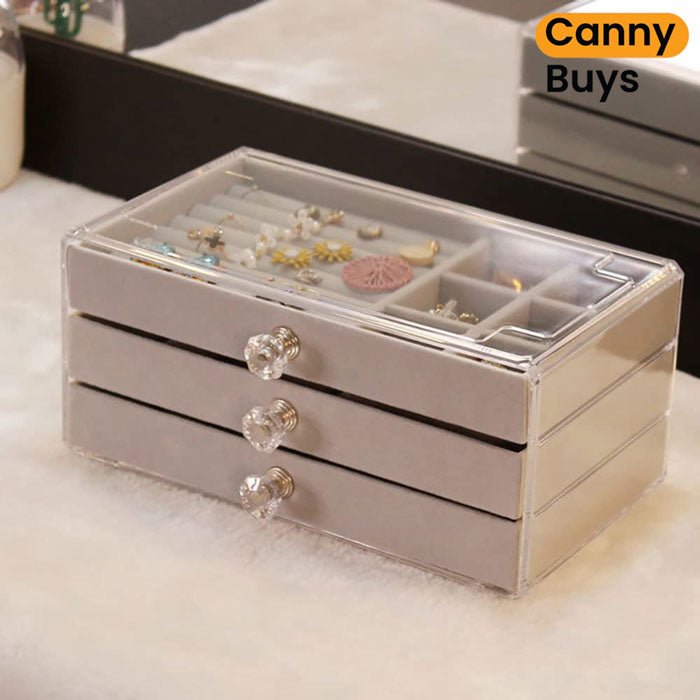 Keep your precious jewelry safe, stylish, and organized with this 3 Layer Jewelry Organizer. Made from high-quality luxury material, it combines transparency, durability, and elegance.