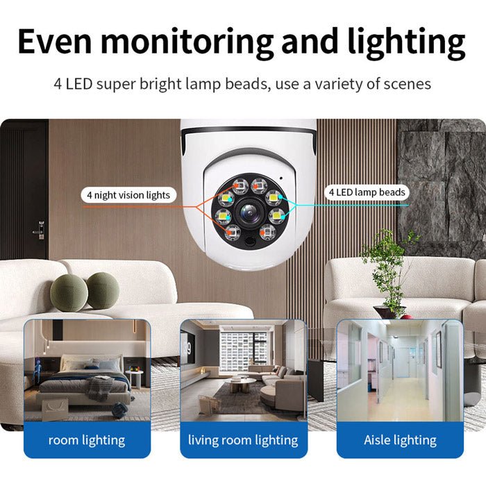 Keep your home safe and monitored with this high-definition panoramic bulb camera that doubles as a light! Easy to install and packed with smart features, it’s the perfect choice for discreet indoor security.