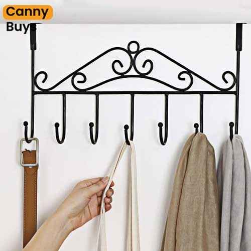 Maximize your storage space with the Over-the-Door Hook Rack, featuring 7 sturdy hooks for hanging clothes, hats, coats, towels, and more. No drilling or screws required—just hang it over any standard door for instant organization!