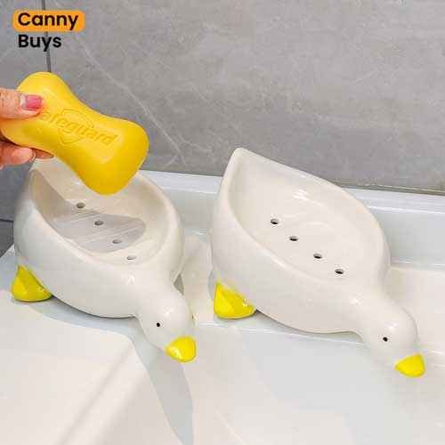 Add a fun touch to your bathroom or kitchen with this adorable duck-shaped ceramic soap tray, designed for both functionality and style.