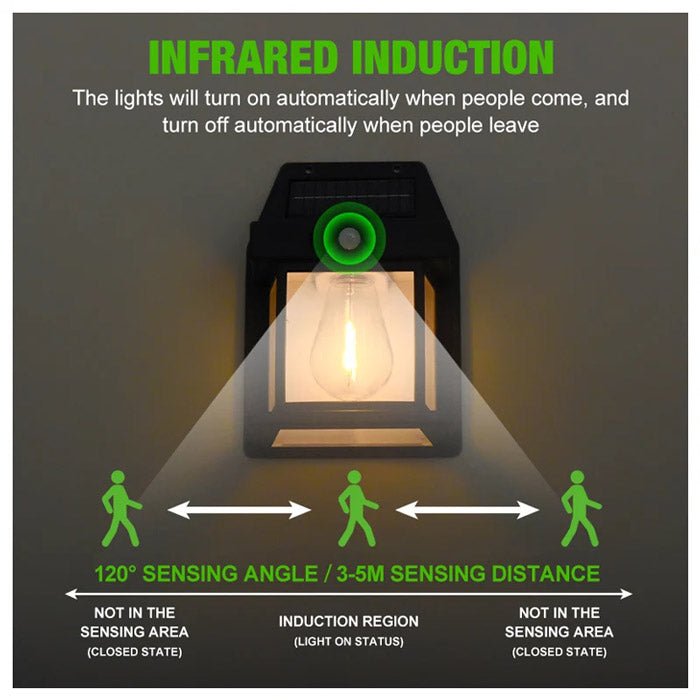 Upgrade your outdoor lighting with this solar motion sensor tungsten wall lamp — a perfect blend of style, function, and eco-friendliness.