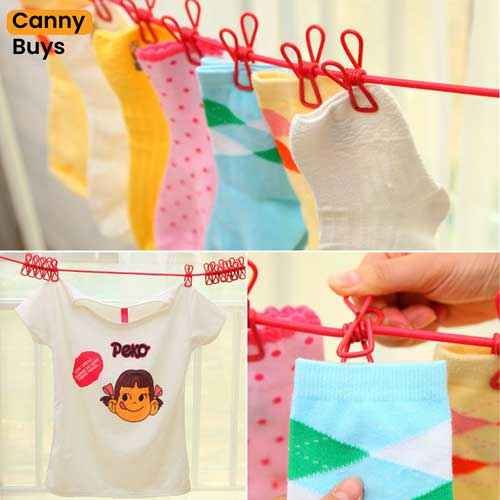 ✅ 12 Strong Clips for Secure Drying – Comes with 12 built-in clips, making it easy to hang clothes, towels, socks, and baby clothes securely without worrying about them falling.