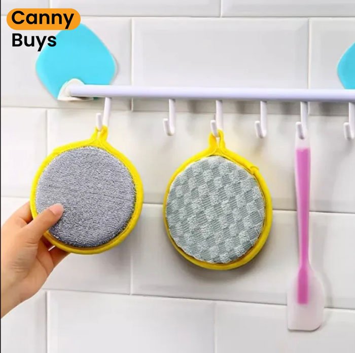 Upgrade your kitchen cleaning with this Round Dishwasher Sponge, designed with a double-sided structure of nylon mesh, cotton scouring pad, and PU sponge. Its water absorption makes cleaning faster, easier, and more efficient. Perfect for daily dishwashing, scrubbing pots, or cleaning bowls without leaving scratches.
