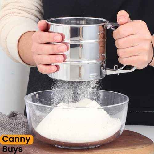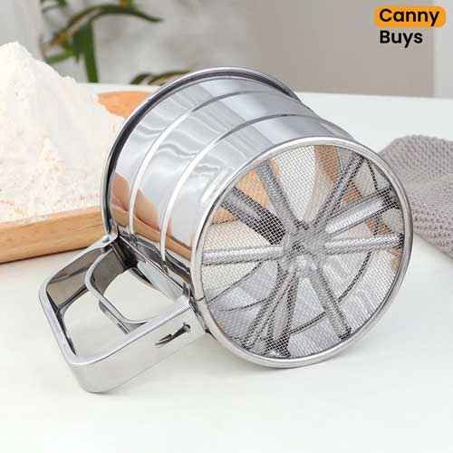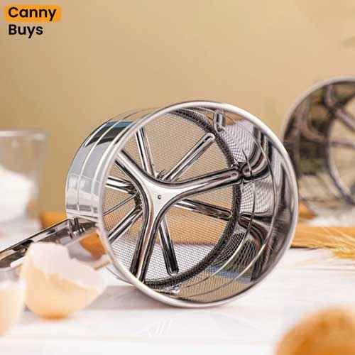 The Stainless Steel Flour Sifter with Rotary Agitator by Canny Buys is a must-have tool for every baking enthusiast. Whether you’re preparing cakes, cookies, or pastries, enjoy effortless sifting and perfect results every time. Upgrade your baking game with Canny Buys today!