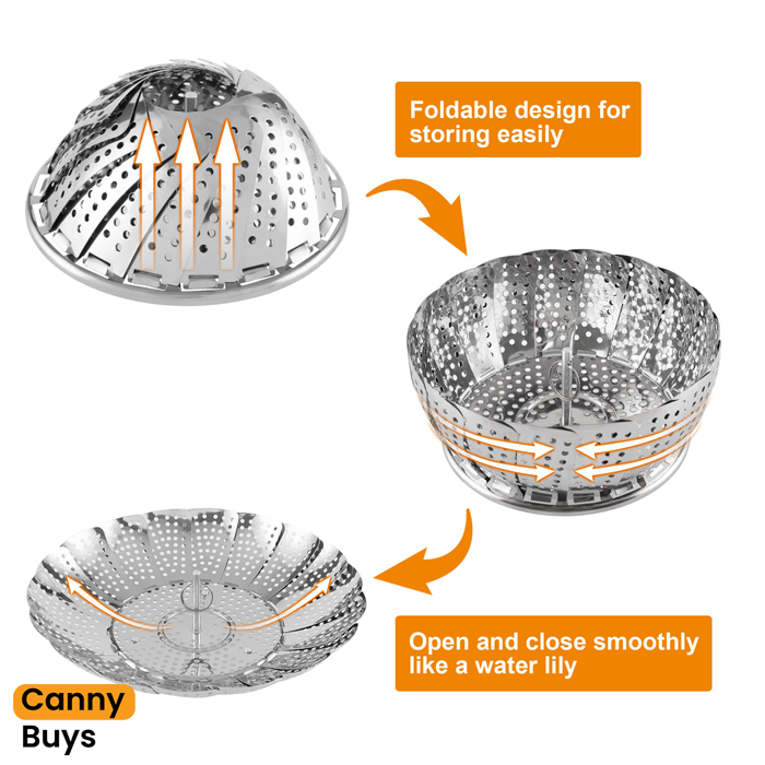 Make healthy cooking easier with this Stainless Steel Foldable Food Steamer – a must-have kitchen tool for steaming vegetables, fruits, dumplings, and more. Its clever foldable design fits most pots and saves space in your kitchen!